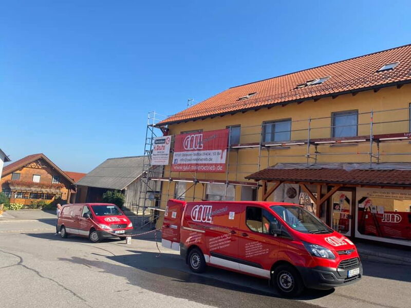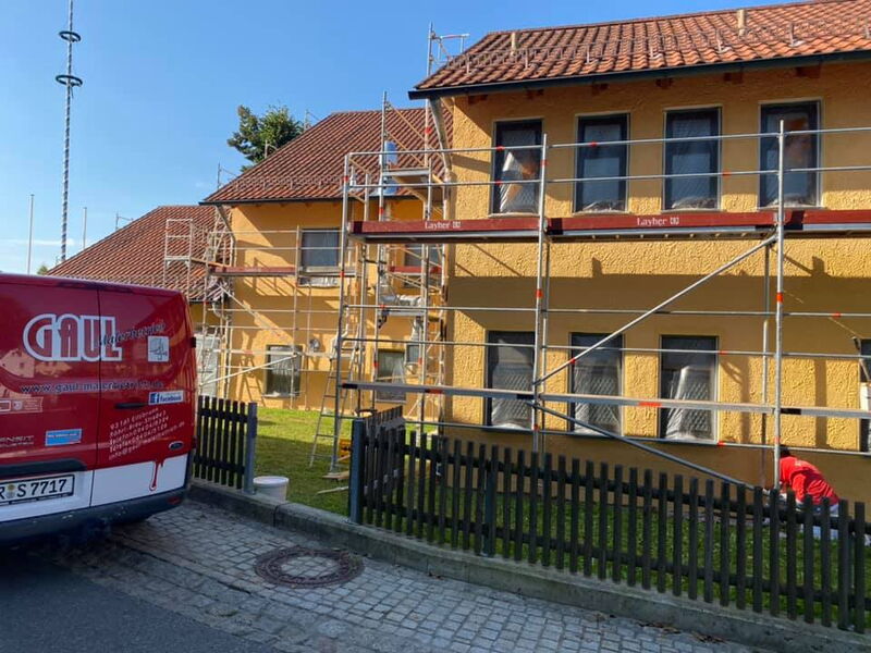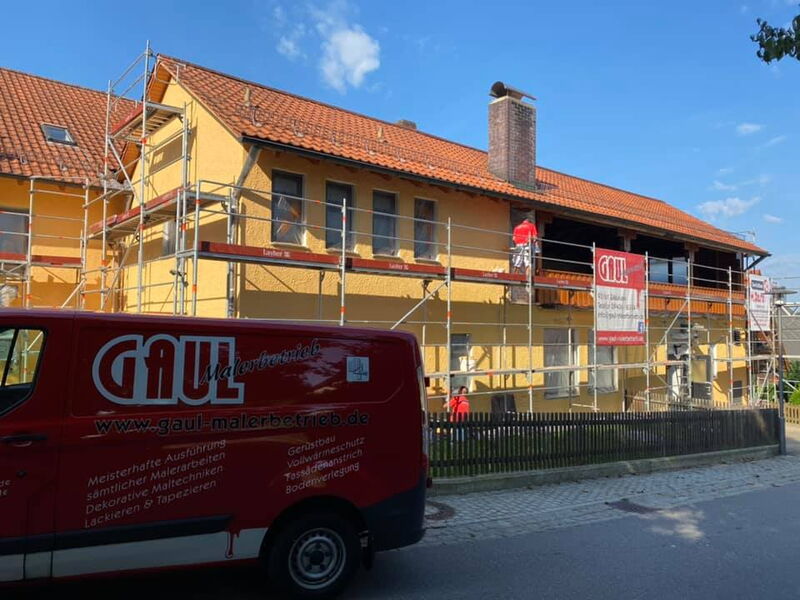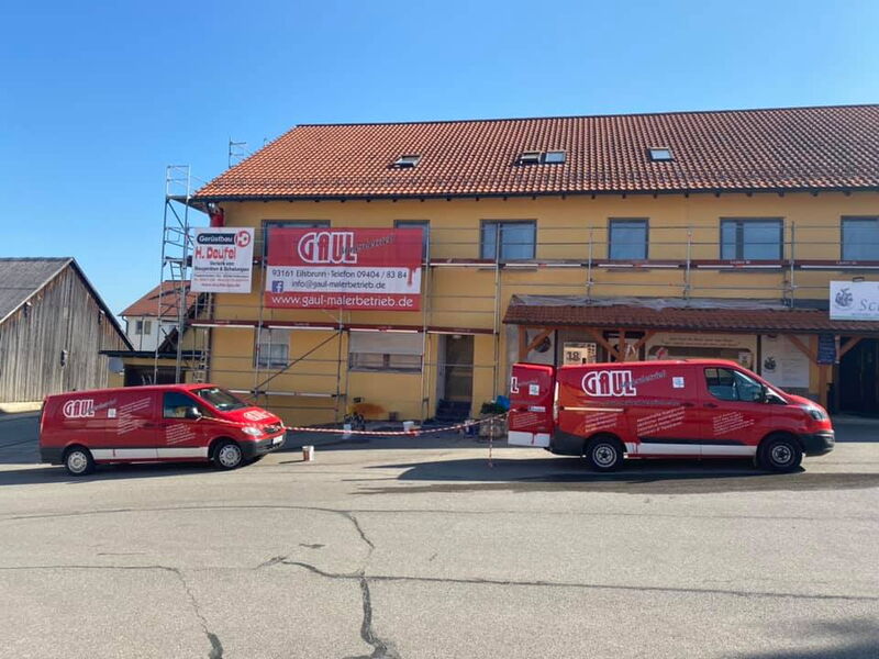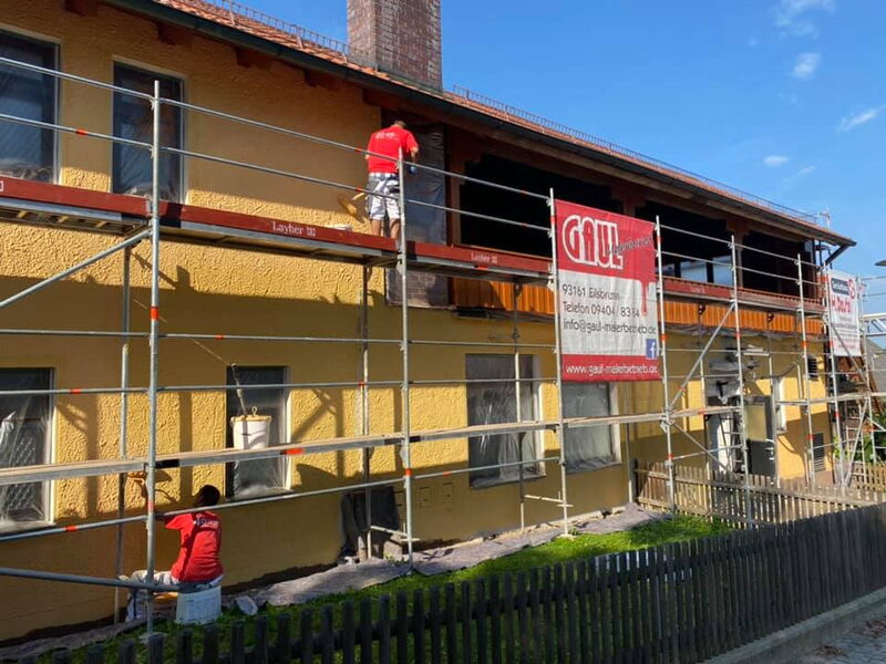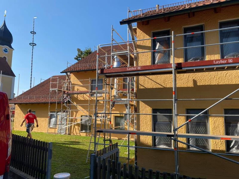 Fassadenrenovierung am Gebäude des Landgasthofs und der Metzgerei Schwindl in Viehhausen.